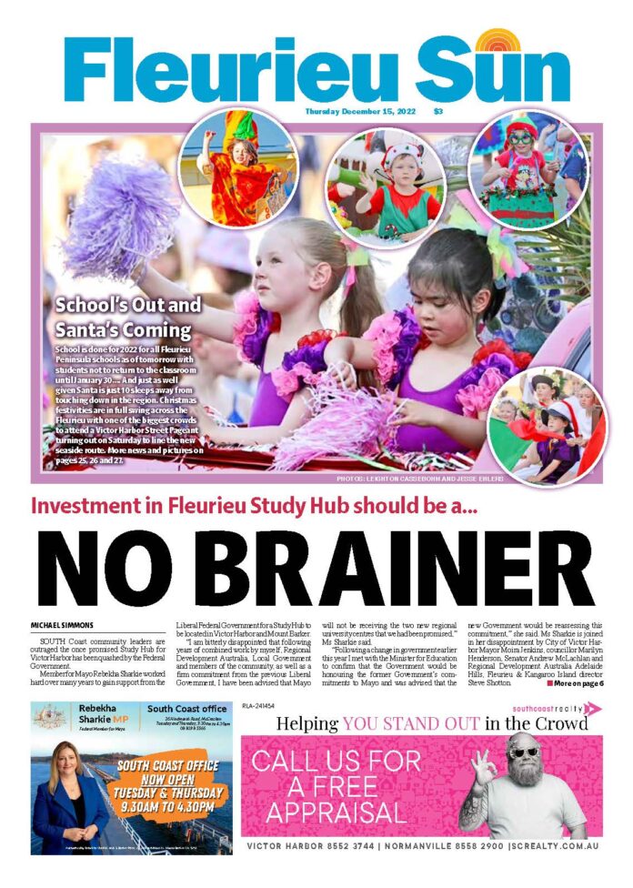 Thursday, December 15 Subscribe or Login to see the rest of the content. Username Password * Remember Me Forgot Password News Premier attacks local Member 20/11/2025 The Member for Finniss David Basham has rejected comments made by the State Premier Peter Malinauskas during Question Time on Tuesday, November 11 and... Rescue ready 20/11/2025 Chiton Rocks Surf Life Saving Club has won a brand new inflatable rescue boat just in time for the Summer holidays. The Fleurieu club was... Ripe for the picking 20/11/2025 Strawberry picking season is here - that much was evident at Harvest the Fleurieu at Mount Compass on Sunday, November 16, for its annual...