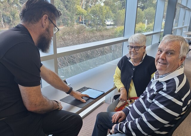 Roger and Sue Watson enhancing their digital skills at the Victor Harbor Library. (Supplied)