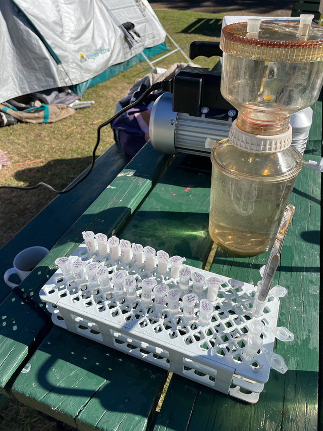 Filtering DNA in water as part of the study. (Chloe Hayes).