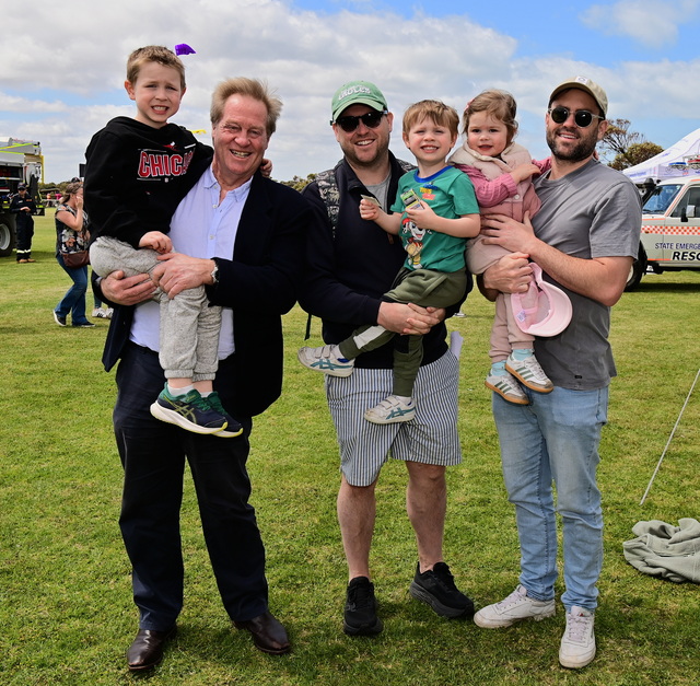 Editor of Fleurieu Sun, The Times and The Islander Michael Simmons opened the 145th Port Elliot Show and is with his two sons Thomas and Campbell and grandchildren Archie, Barnaby and Charlotte.