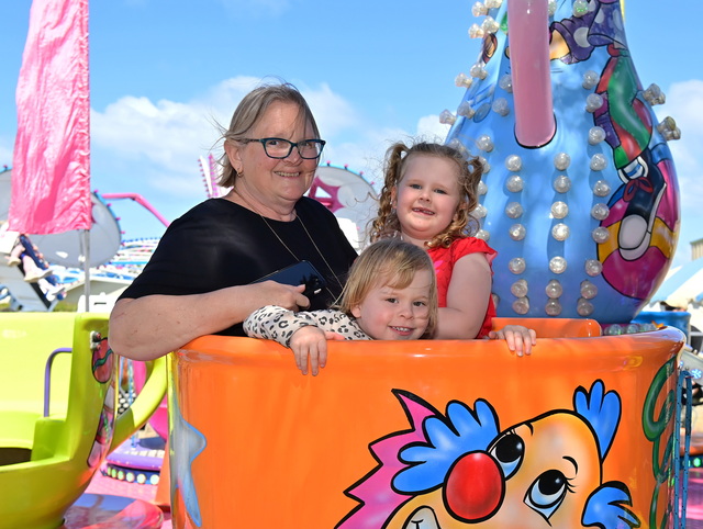Katrina Lange is with Aubrey and Annabelle on one of the many rides at the Port Elliot Show.