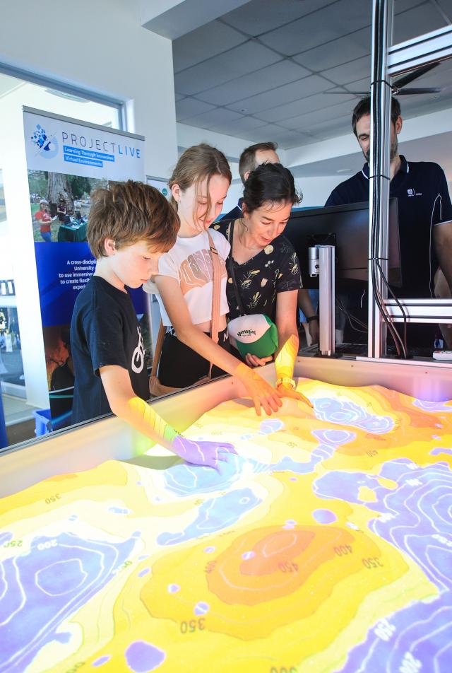 Checking out the interactive display at a CLLMM open day was Huon and Correa Whiterod with Rebecca Nuemann. (Jesse Ehlers 387729_01)
