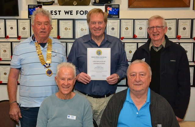 At the Goolwa Men's Probus Club this month were Chris Maynard (president), Michael Simmons (Fleurieu Sun, The Times, The Islander Editor and Guest Speaker), Graeme McPhee (Guest Speaker Officer/vice president) and seated Mark Starkey (secretary) and Peter Austin (newly Inducted member).