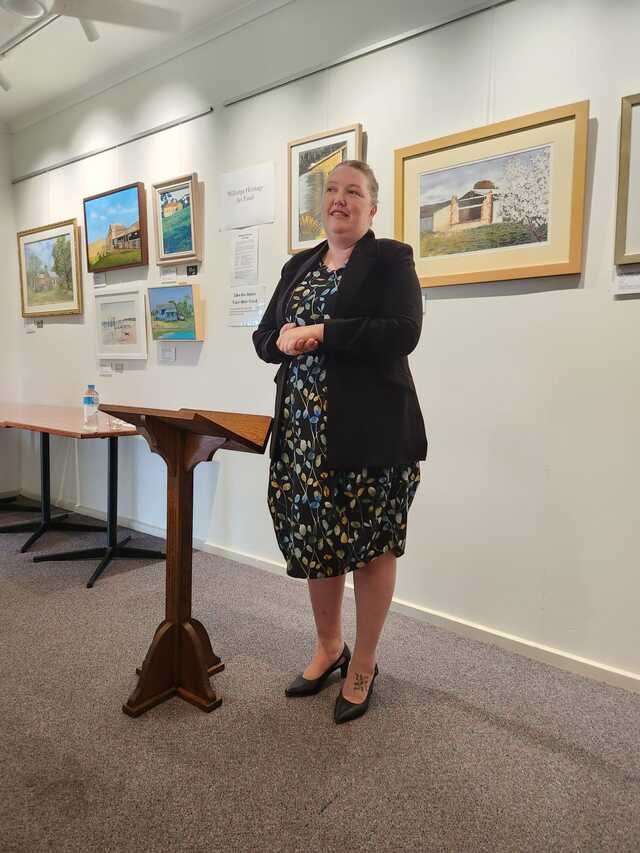 The opening of the Port Willunga Paintings exhibition by Deputy Mayor of the City of Onkaparinga Lauren Jew.