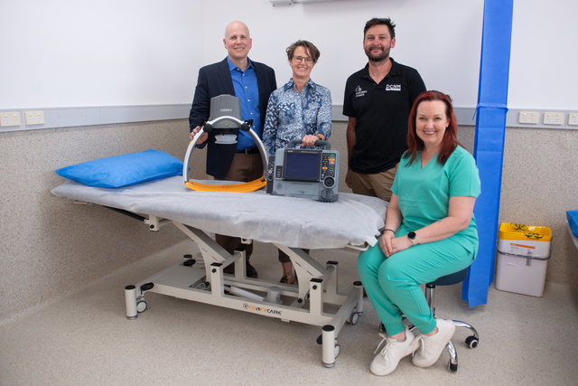 Victor Harbor Medicare Urgent Care Clinic general manager David Lampert, medical practitioner Dr Cherie Price, DCNM Group building contractor Daniel Cocker, and registered nurse Peta Haldane with some of the new equipment. (Dani Brown: 525649_01)