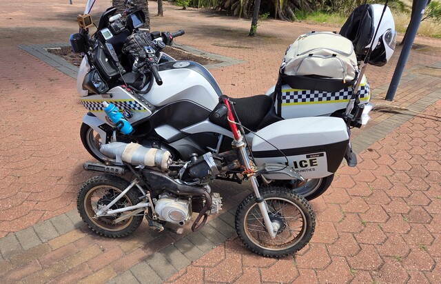 News Police seize pit bike from 11-year-old 27/12/2025 FacebookTwitterEmail The homemade pit motorbike in front of the police motorbike. (SA Police) - Advertisement - Police officers seized a homemade pit motorbike from an 11-year-old Seaford boy on Sunday, December 14. SA Police stated that […] - Advertisement - Subscribe or Login to see the rest of the content. Username Password * Remember Me Forgot Password - Advertisement -