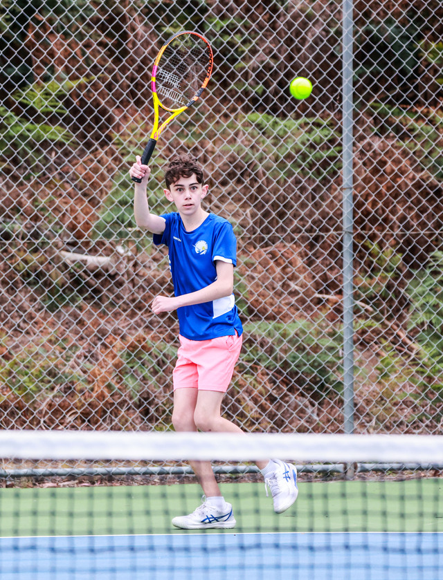 The junior competition in Great Southern managed to play before the weather decided to roll in and stop all senior tennis, so Victor Harbor's Connor Webb made the most of the opportunity and hit a very good forehand. (Jesse Ehlers).