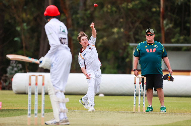 Mount Compass youngster Jozef Przibilla bewilders the batsman with this delivery.